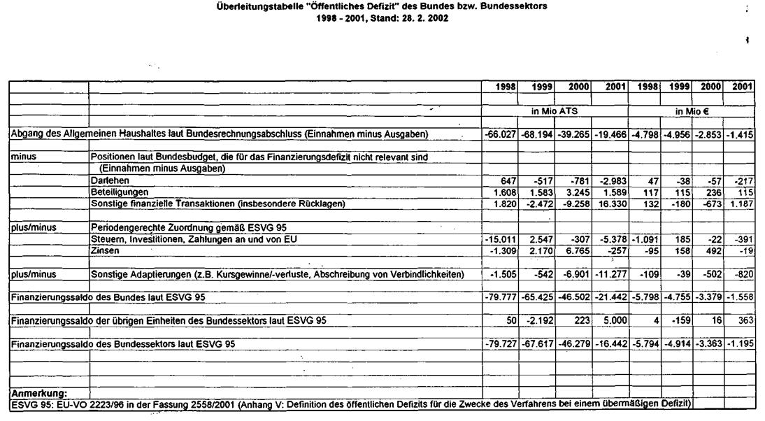 Defizit des Bundes bzw. Bundessektors 1998 - 2001") verweisen.