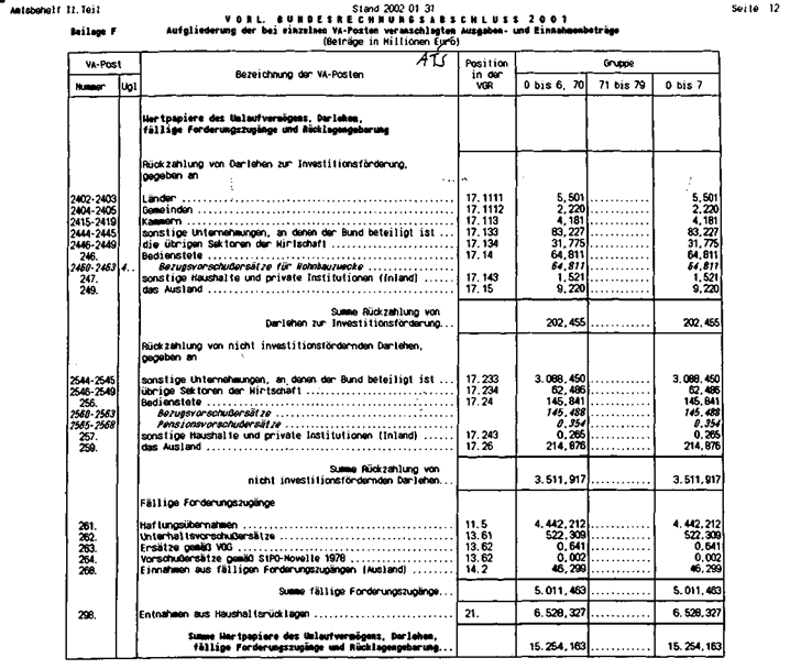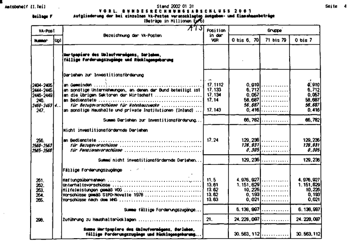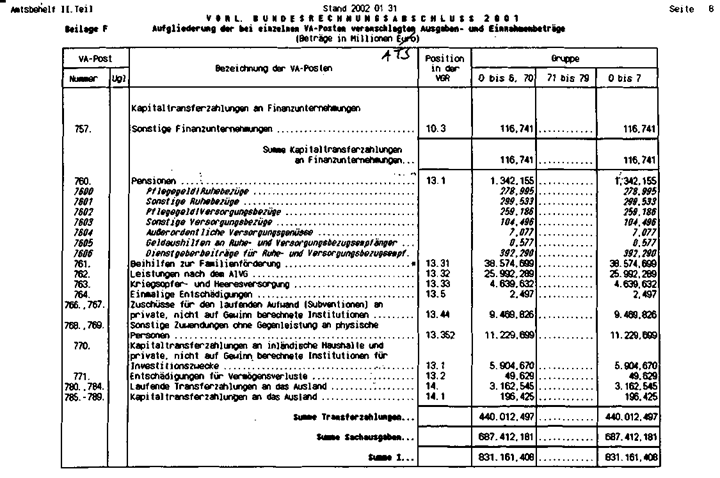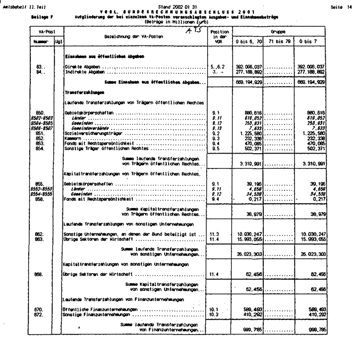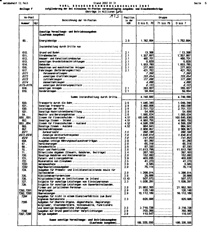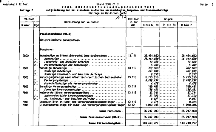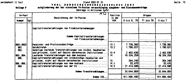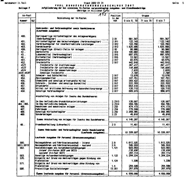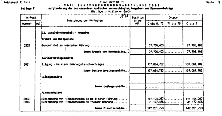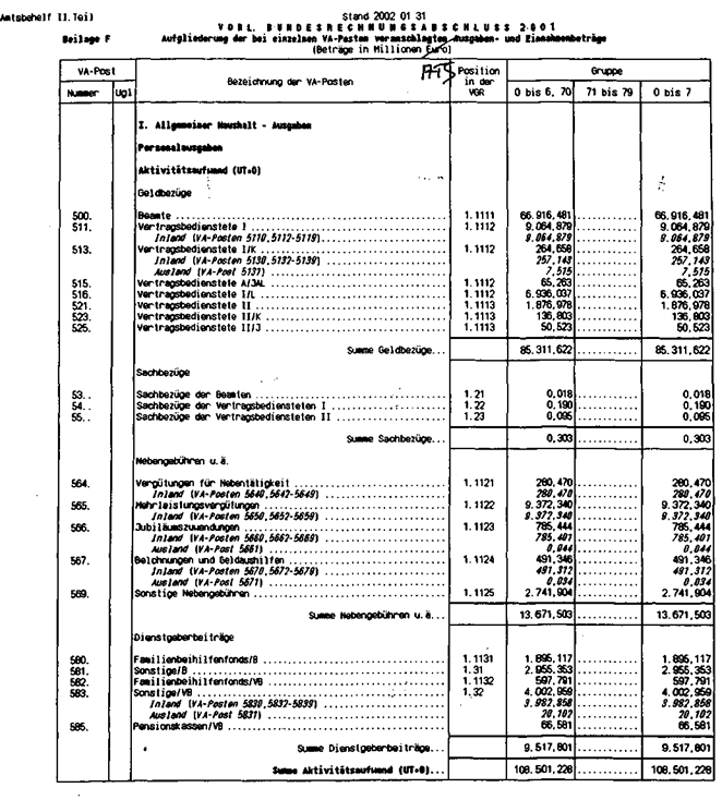 Beilage F des Arbeitsbehelfes zum Bundesfinanzgesetz für das Jahr 2001 entspricht.