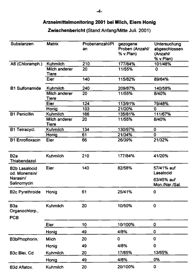 und Antibiotika, davon 1.208 Hemmstoffteste aus Harn, Muskel, Leber und Niere,