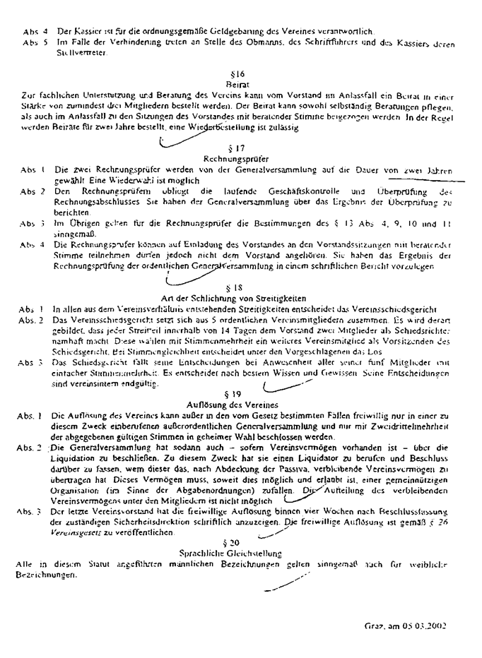Grund der verfassungsgesetzlich gewährleisteten Vereinsfreiheit kann sich