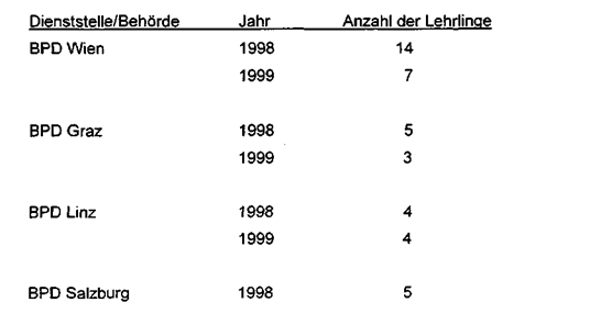 In den Jahren 1999 und 2000 gab es keine Absolventen dieses Lehrberufes.