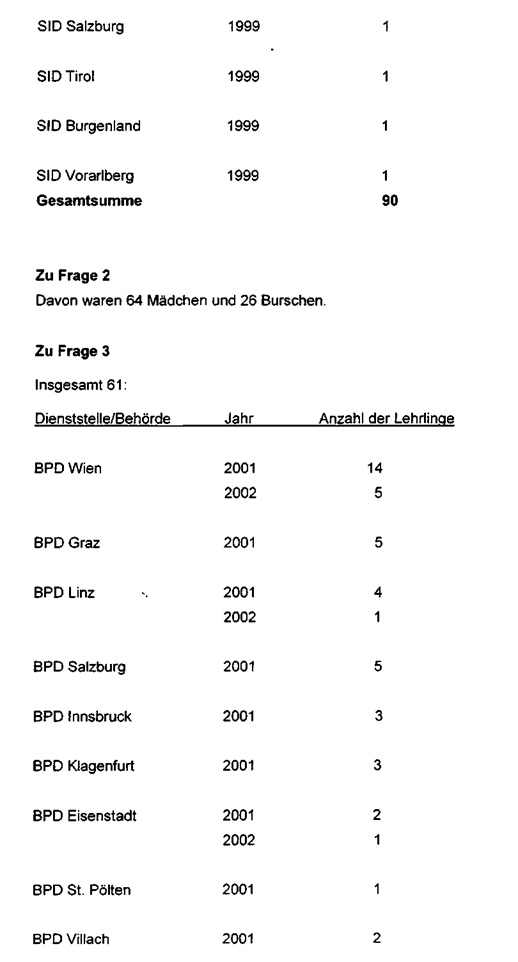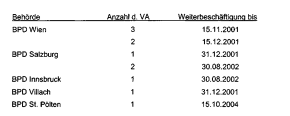 Im Jahr 2001 wurde mit 11 Verwaltungsassistenten eine Weiterbeschäftigung vereinbart.