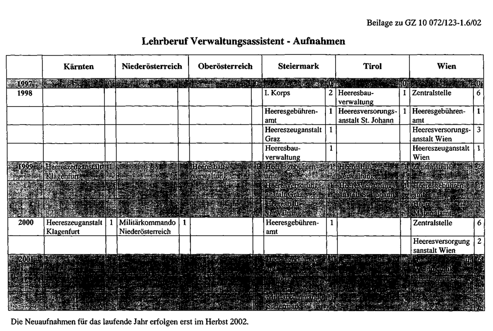 1997 und 30. Juni 2002 wurden in der Zentralstelle und den nachgeordneten