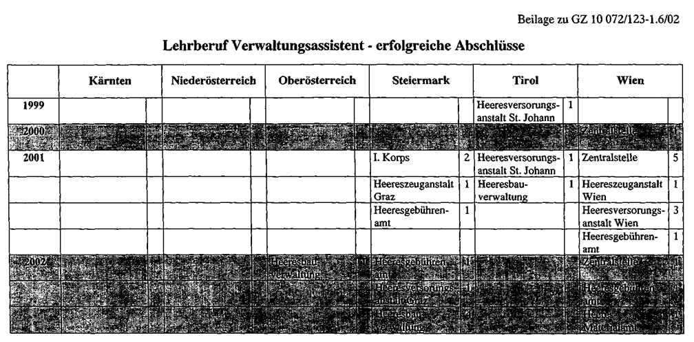 Verwaltungsassistent-Lehrlinge, davon 44 Frauen, aufgenommen. Die