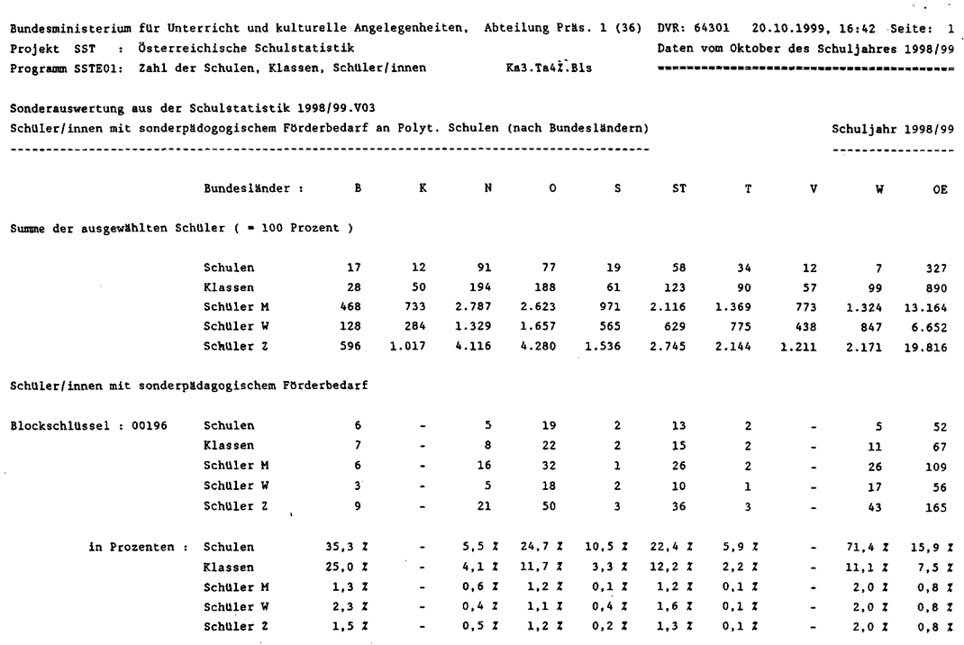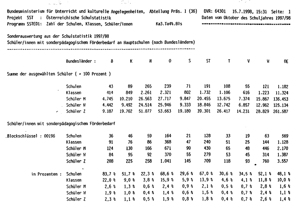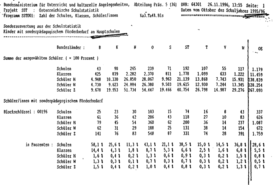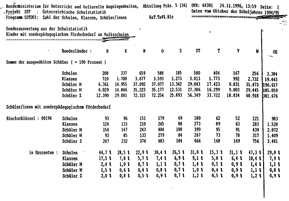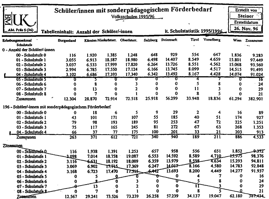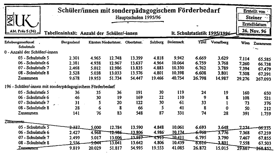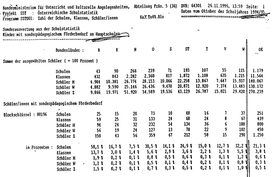 Schulstatistik zu integrativen Schulversuchen an PTS gibt es