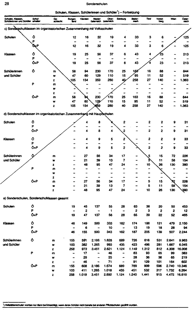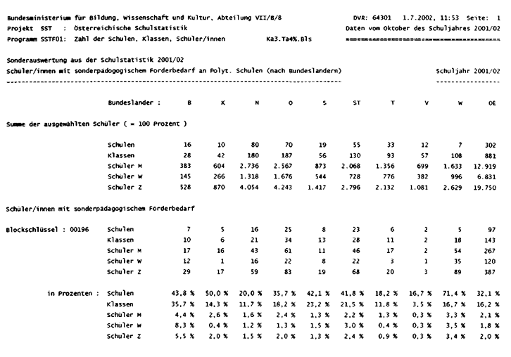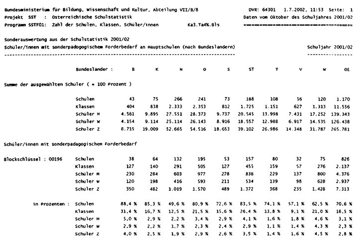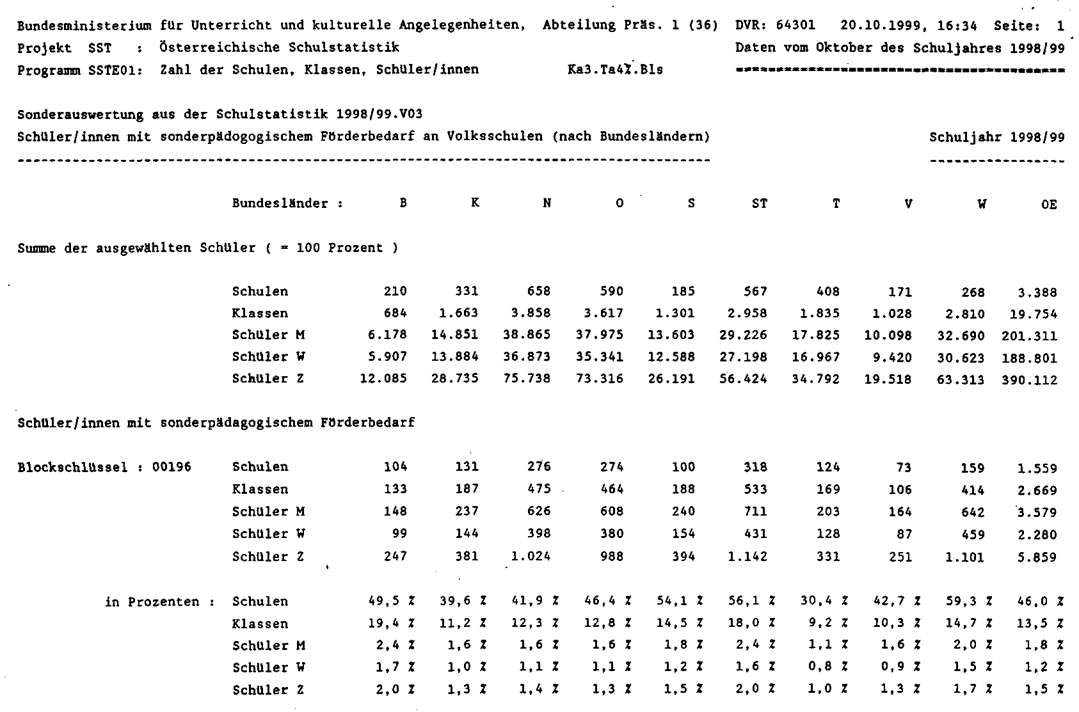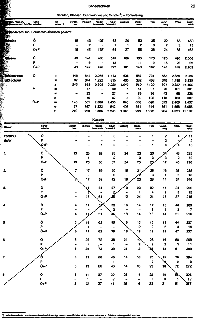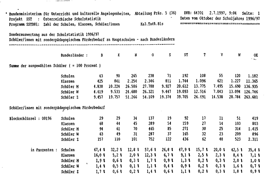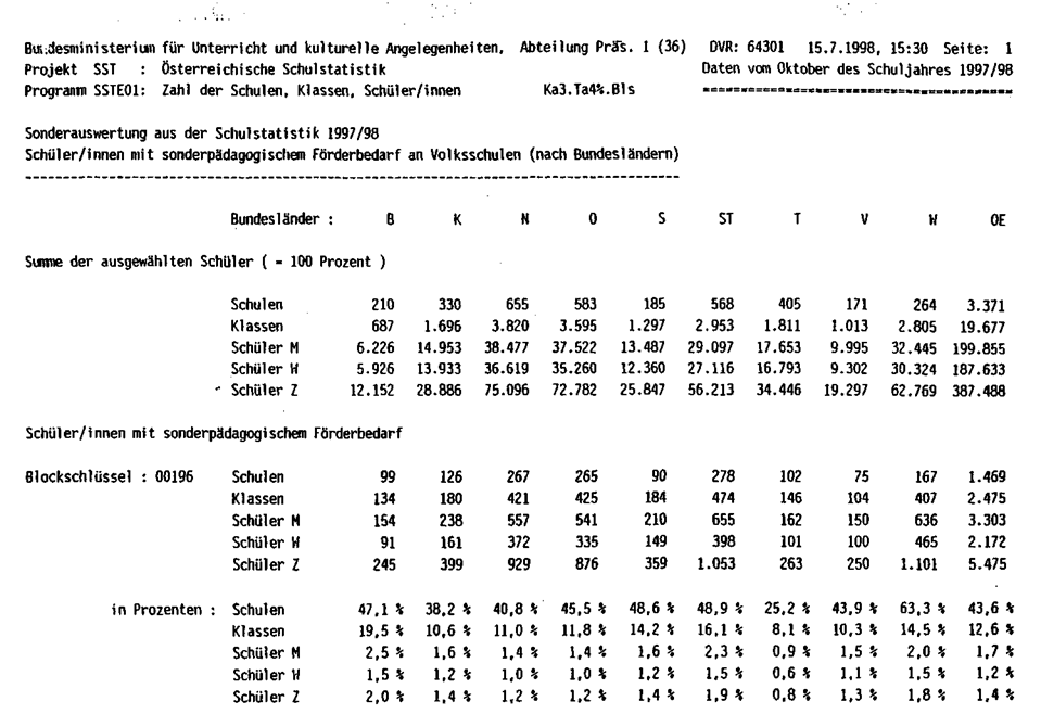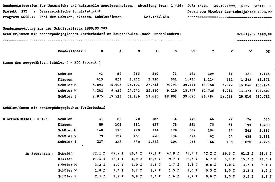 Schulstatistik zu integrativen Schulversuchen an PTS gibt es
