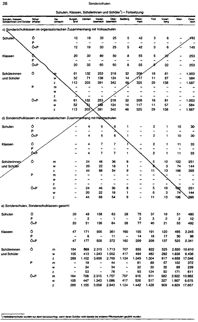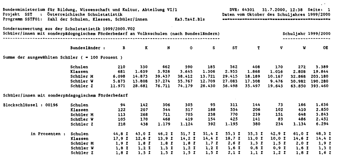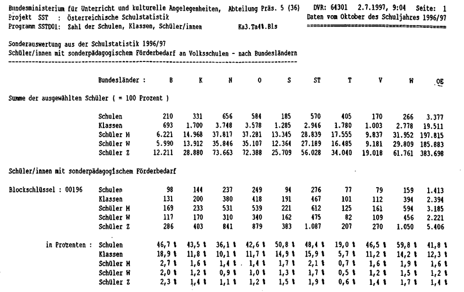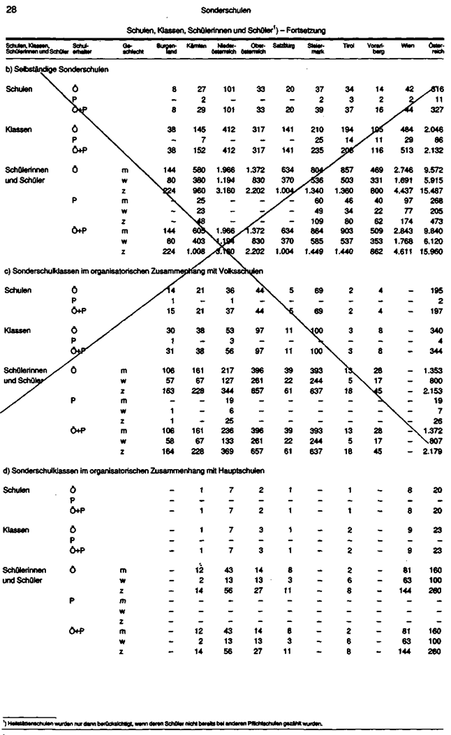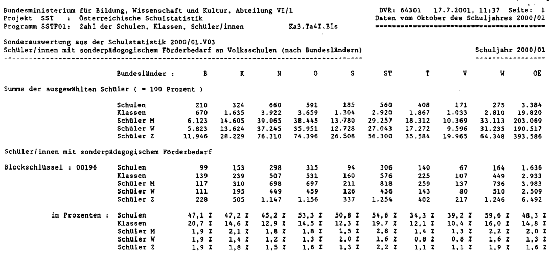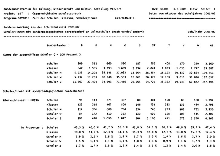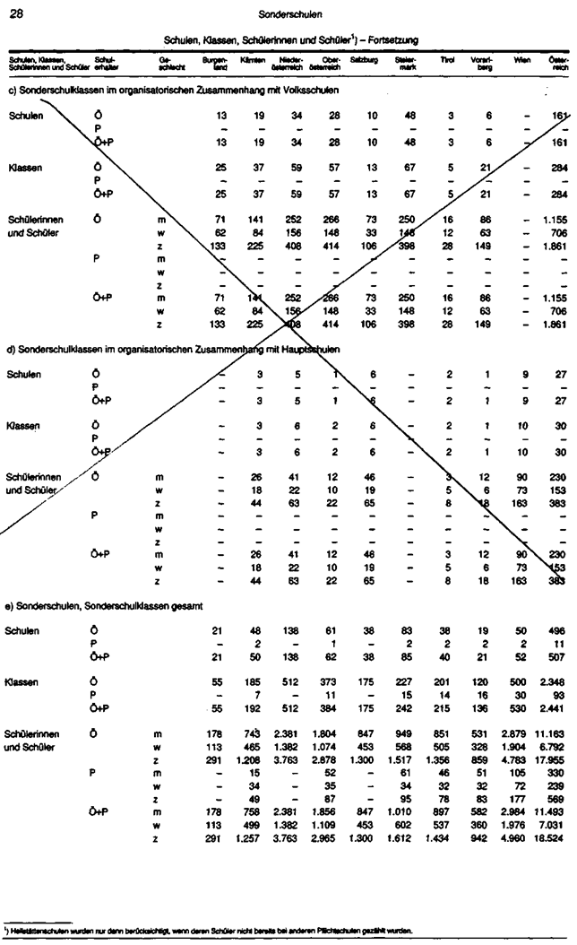 Schulstatistik zu integrativen Schulversuchen an PTS gibt es