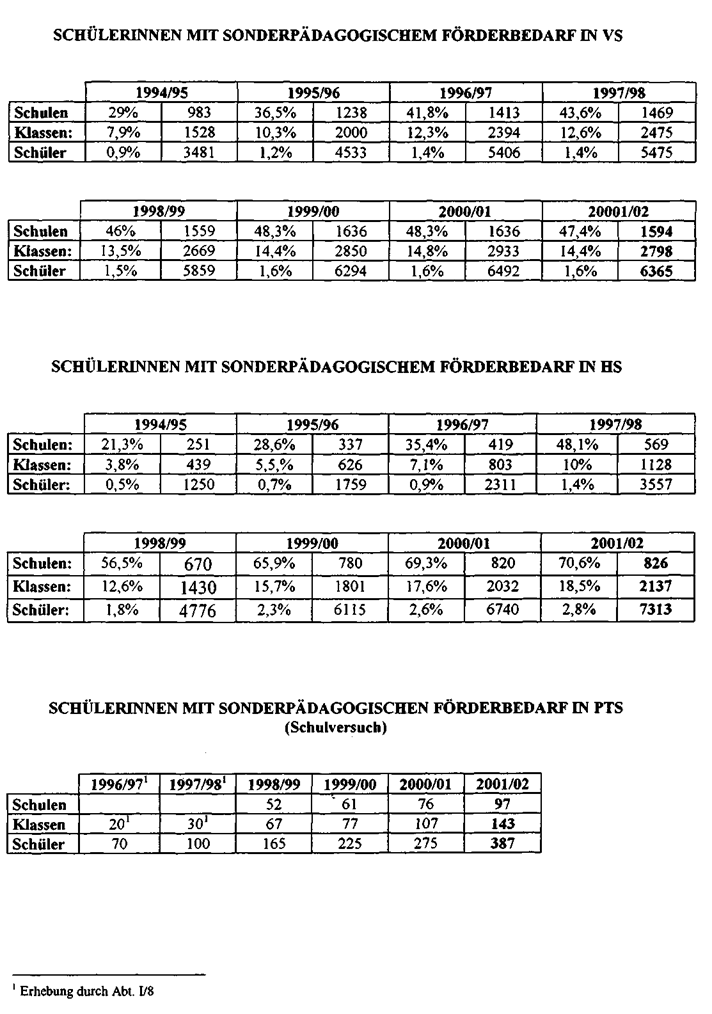 zur Integration gibt es seit dem Schuljahr 2000/01 nur mehr an Polytechnischen