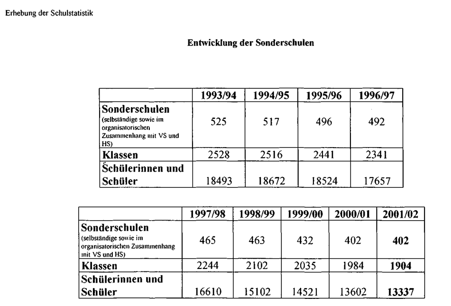 Fragestellungen auf die Entwicklung der Sonderschulen beziehen.
