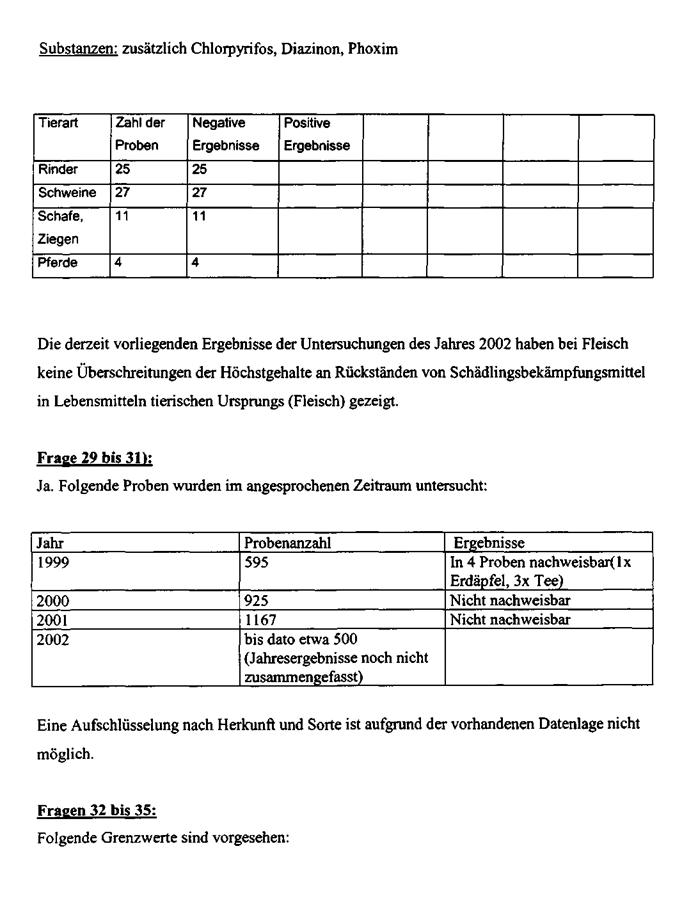 Mein Ressort hat im Zuge des Rückstandskontrollprogramms Tierkörper anläßlich der