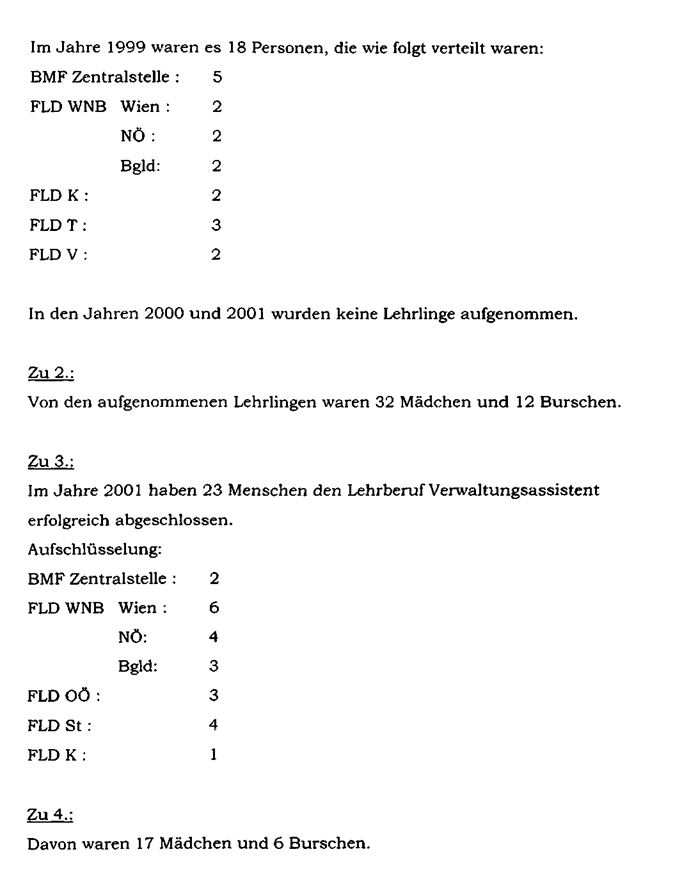 parlamentarische Anfrage Nr. 3976/J vom 11. Juni 2002