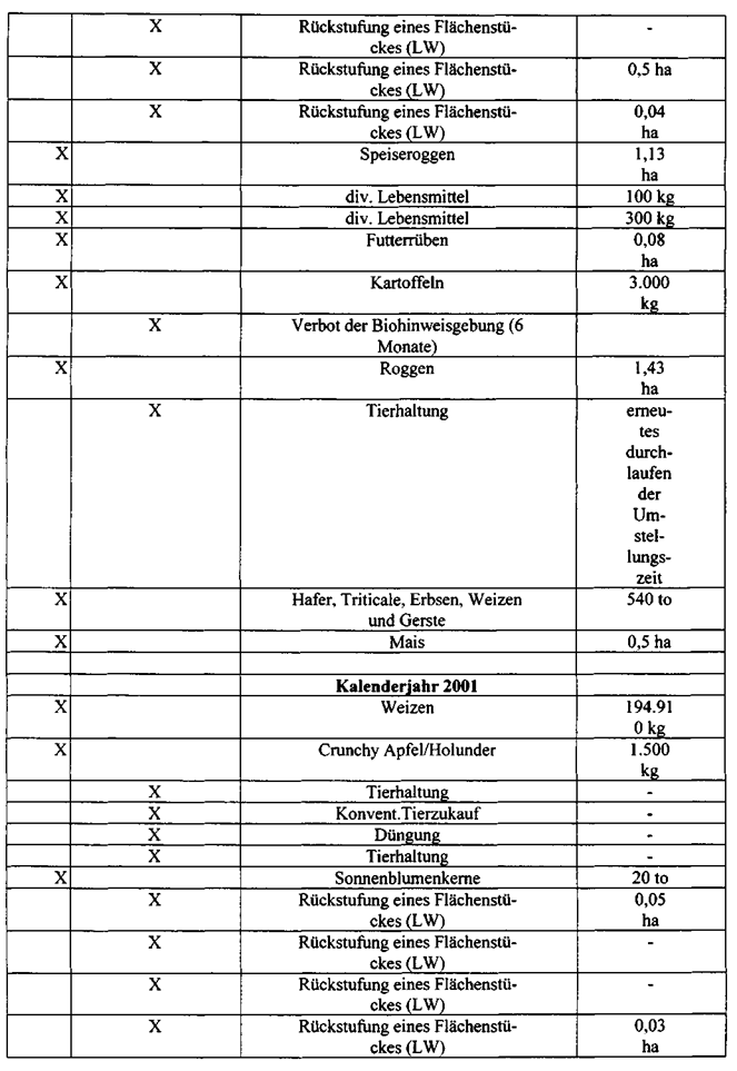 Partie bzw. Verbot der Vermarktung aus biologischer Landwirtschaft für den