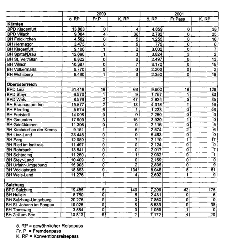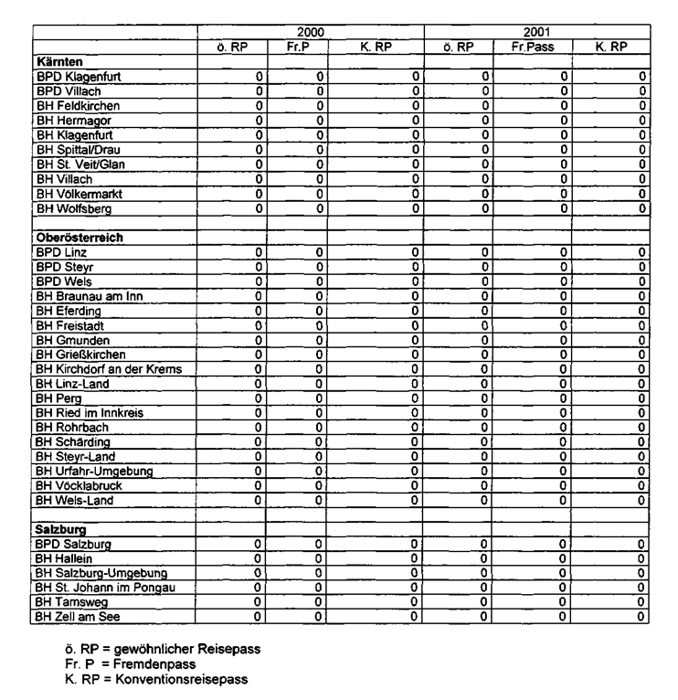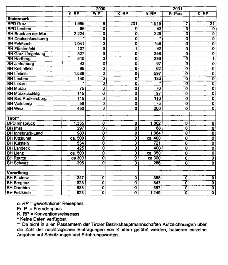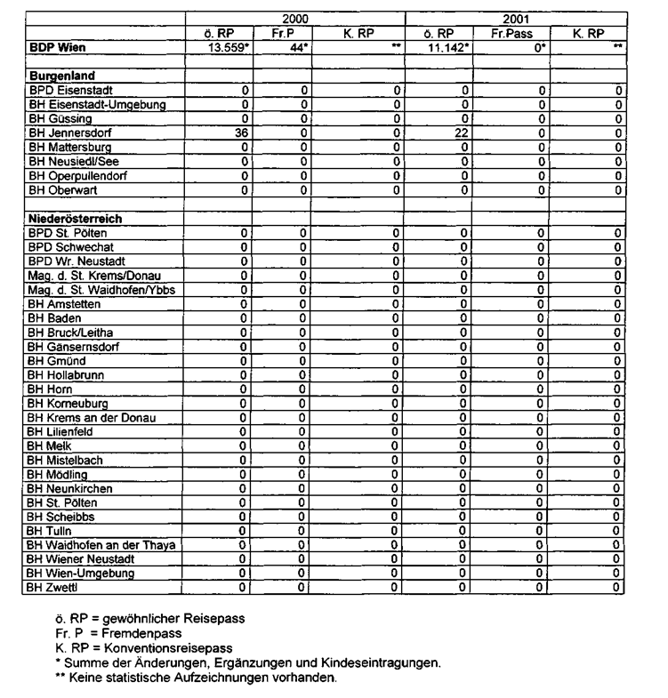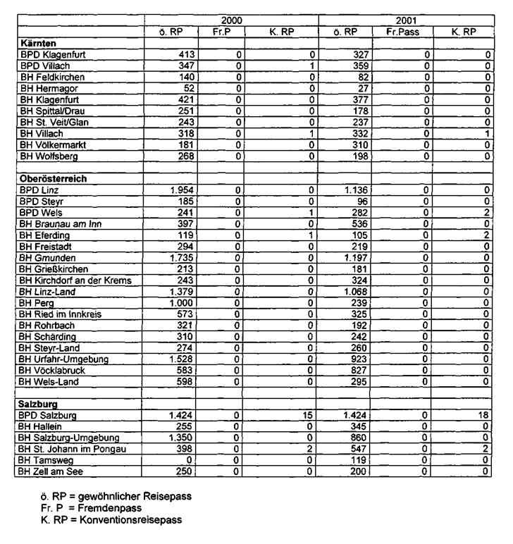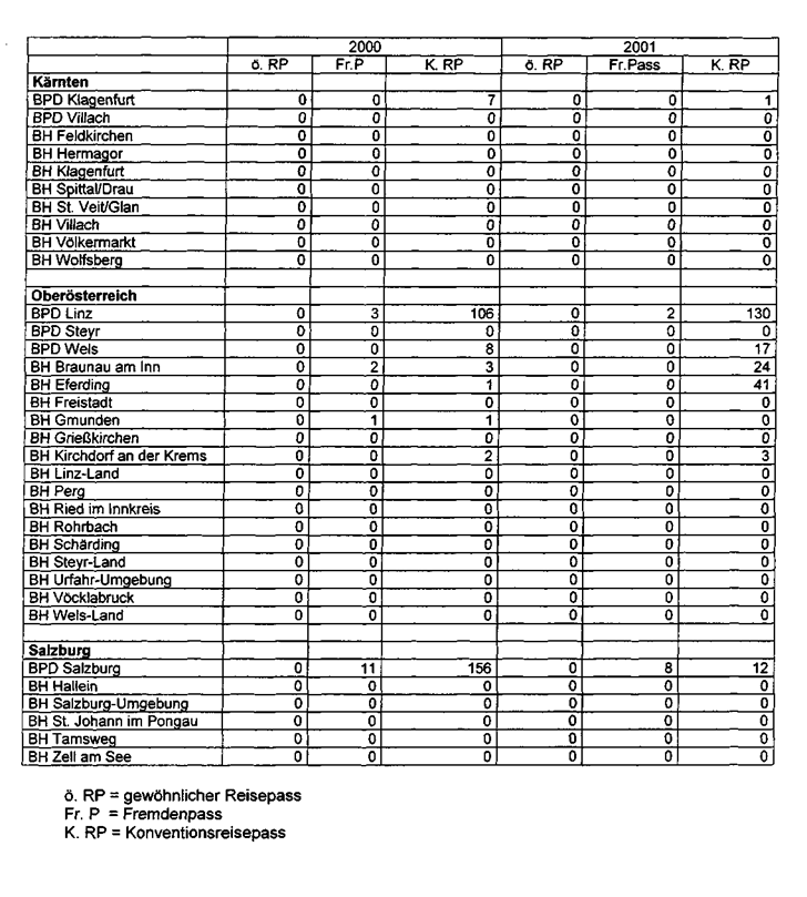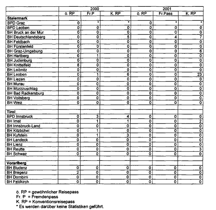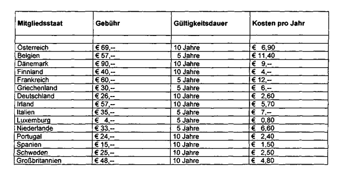 Konventionsreisepasses ist der nachstehenden Tabelle zu entnehmen: