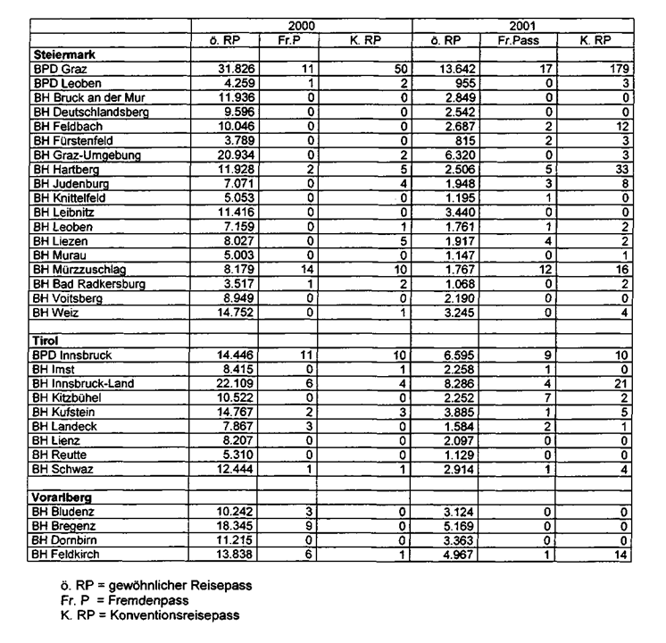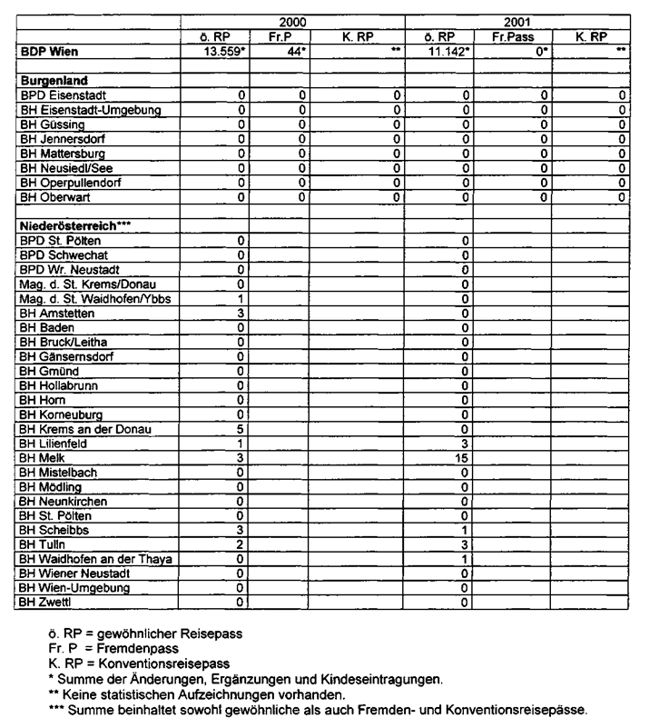 Reisepasses, Fremdenpasses und Konventionsreisepasses ist der nachstehenden