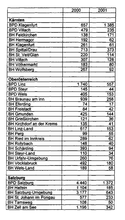 Ausflugsschein) ist der nachstehenden Tabelle zu entnehmen: