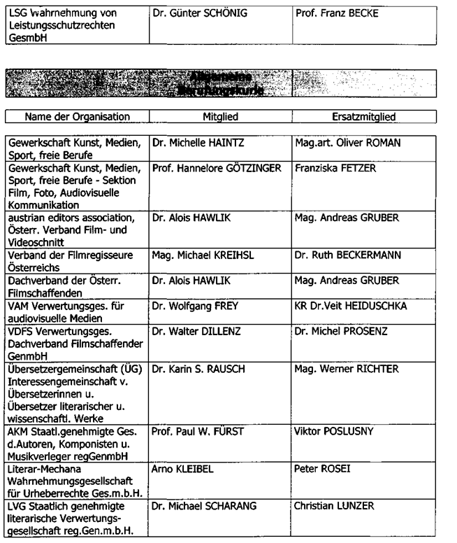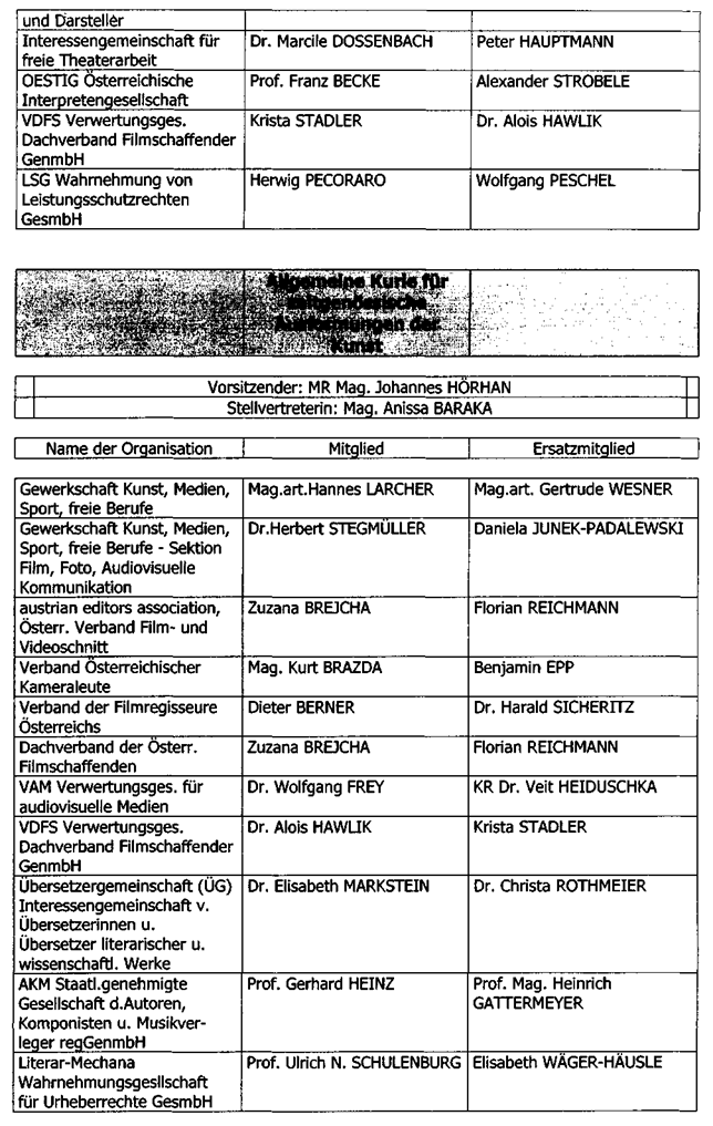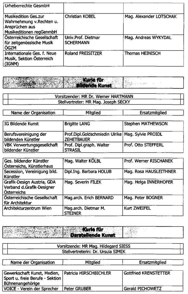 Künstlervertretungen und Verwertungsgesellschaften, die Mitglieder in