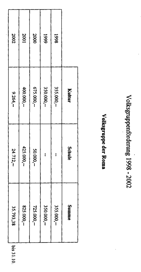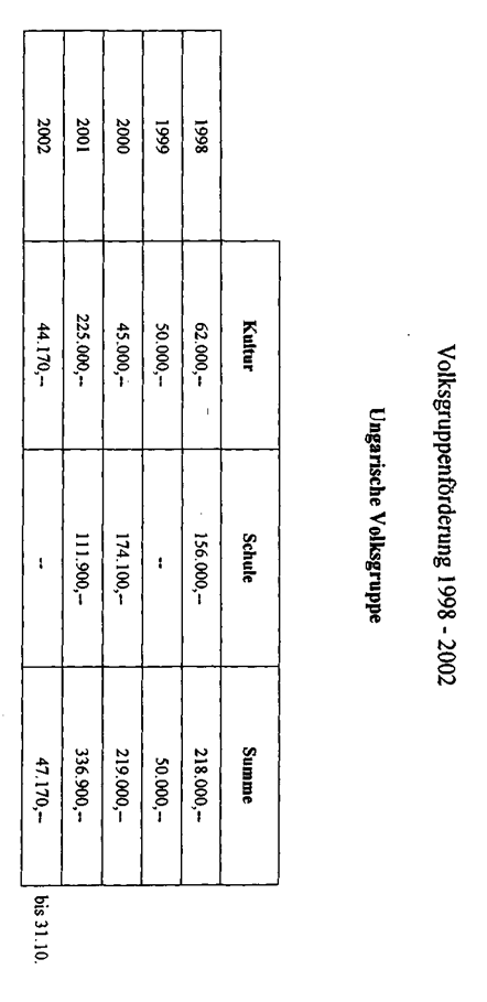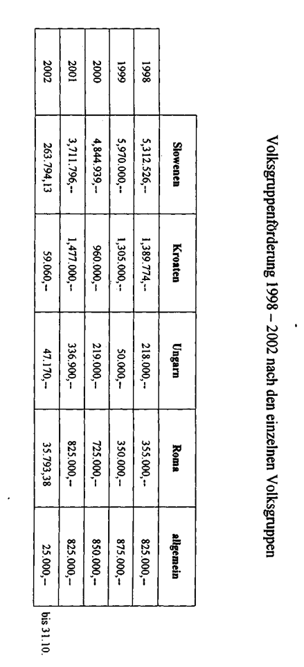 den Jahren 1998 bis 2002 gewährten Volksgruppenförde-