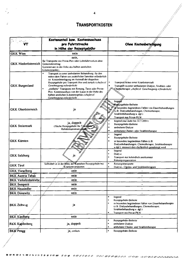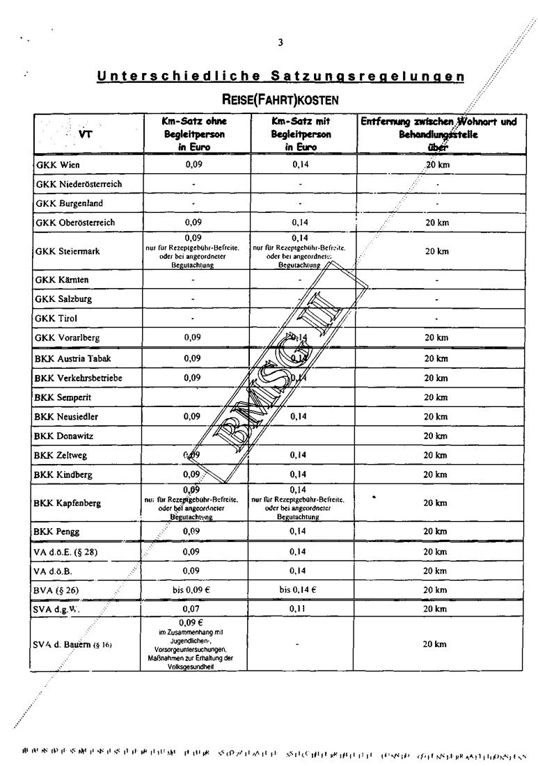 Versicherungsträger bietet die ebenfalls beiliegende Aufstellung.