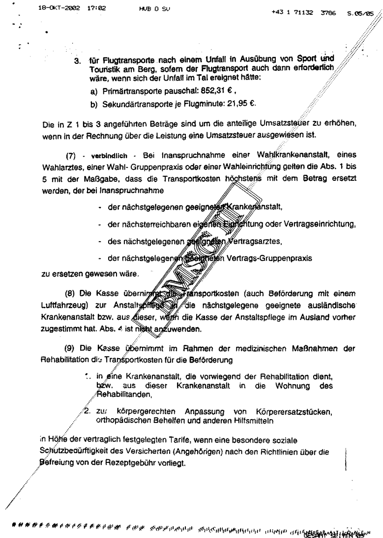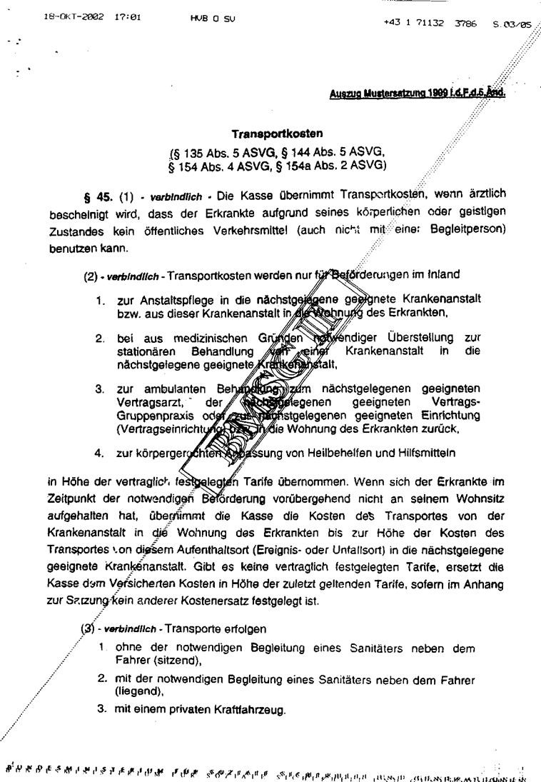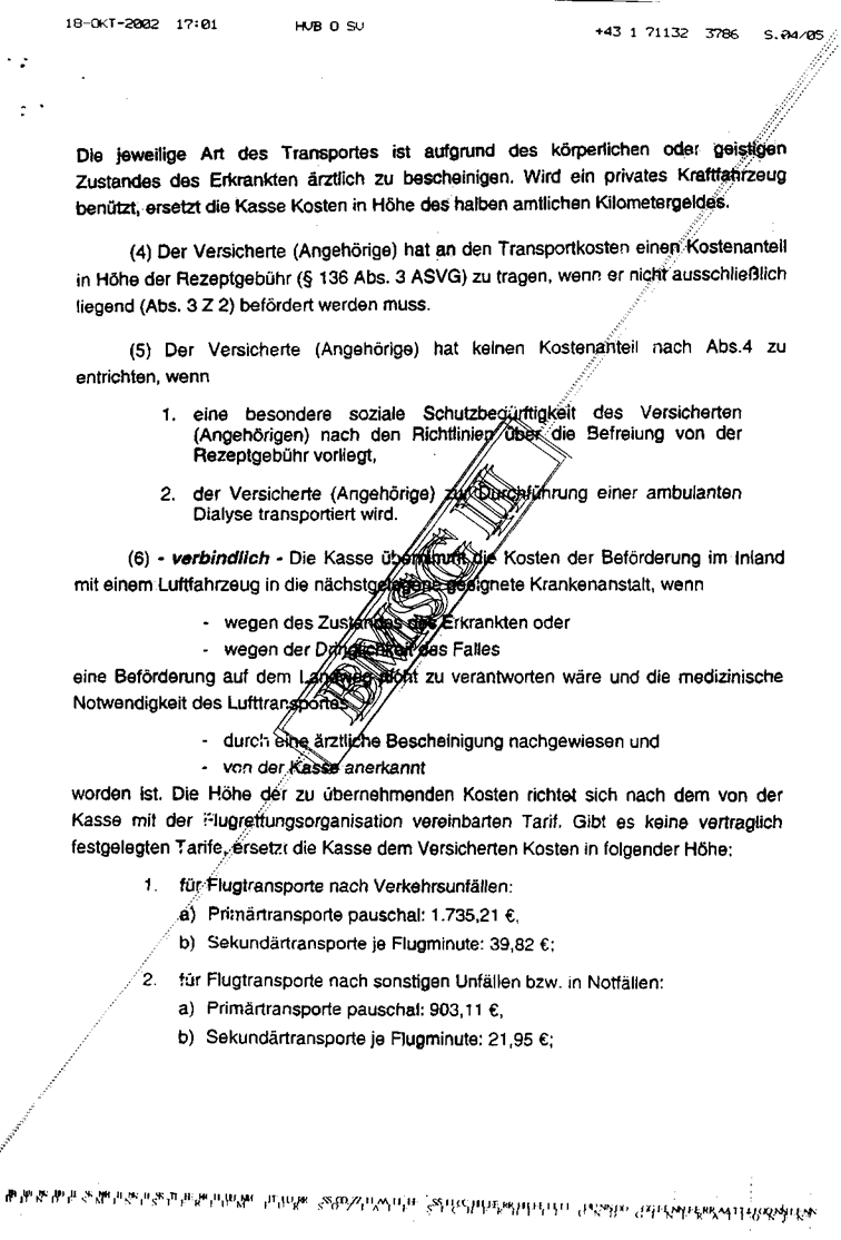 Abs.5 ASVG). Entsprechendes gilt auch für die Beförderung zu oder von