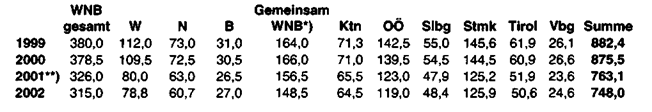 gesamt WNB WNB*) Ktn OÖ Slbg Stmk Tirol Vbg Summe