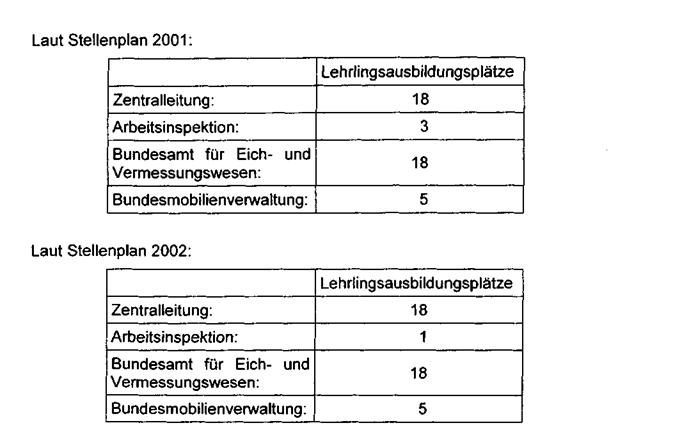Die Anzahl der Lehrlingsausbildungsplätze im Ressort stellt sich wie folgt dar: