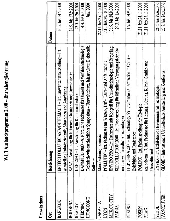 Die Beilage 1 enthält eine Aufstellung der internationalen Messen im Umwelttechnikbereich,