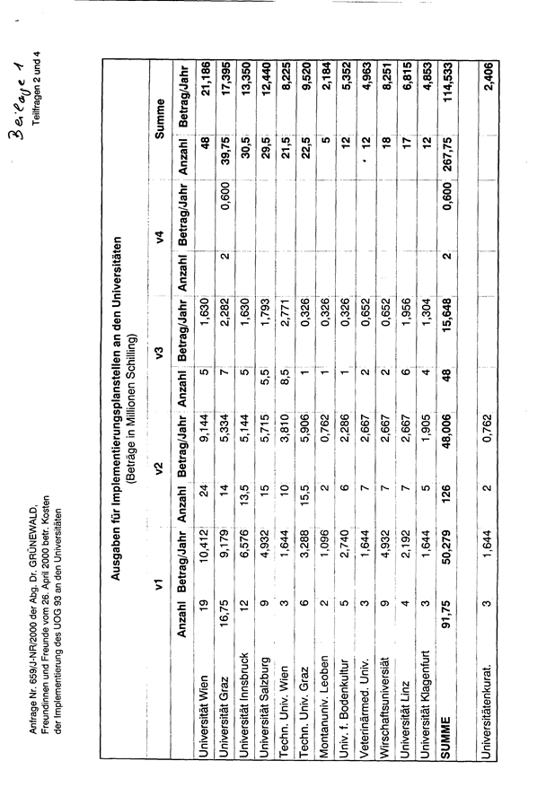 Für die Implementierung des UOG 1993 wurden Projekte in der Höhe von insgesamt