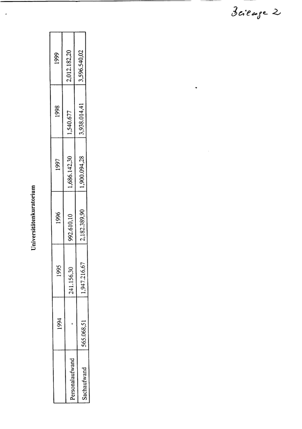 Die Einrichtung des Universitätenkuratoriums verursachte im Sachaufwand in den Jahren 1994 bis