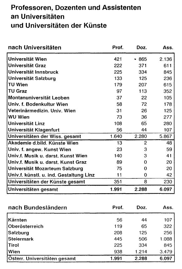 sitätsprofessoren, Universitätsdozenten, Universitätsassistenten und Bundeslehrer an den Univer -
