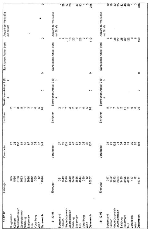 2092/91 mit Stichtag 31.12. in den Jahren 1997,1998 und 1999 ‚aufgeschlüsselt nach Bun -