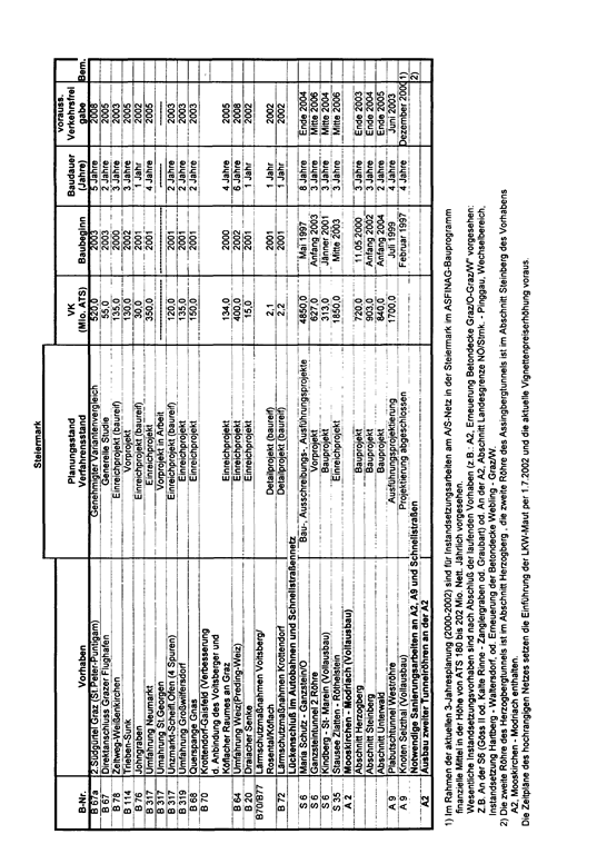 Projekte mit Realisierungszeitpunkt ab 2010 sind in der Dringlichkeitsreihung