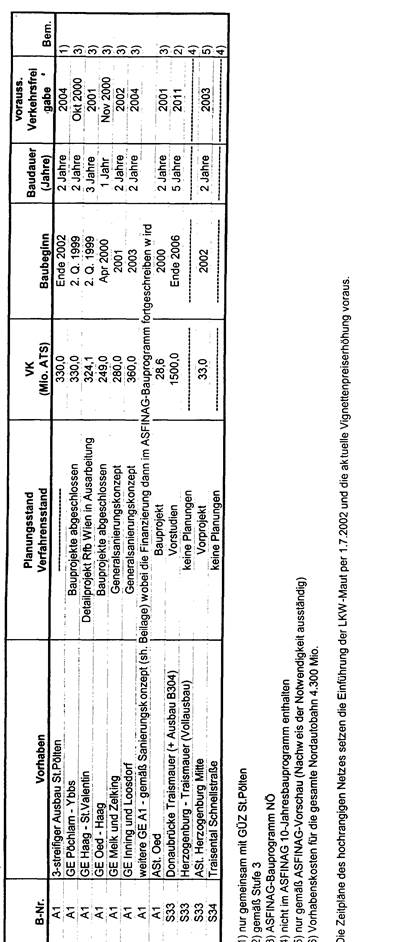 Projekte mit Realisierungszeitpunkt ab 2010 sind in der Dringlichkeitsreihung