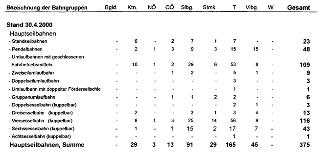 wesentlich komplexeren Systeme der Hauptseilbahnen diese bundeseinheitliche