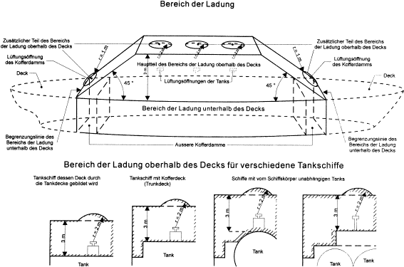 (1) Für Gasräume innerhalb von Ladetanks kann eine Inertisierung oder Abdeckung der Ladung erforderlich sein. Diese sind wie folgt definiert: |