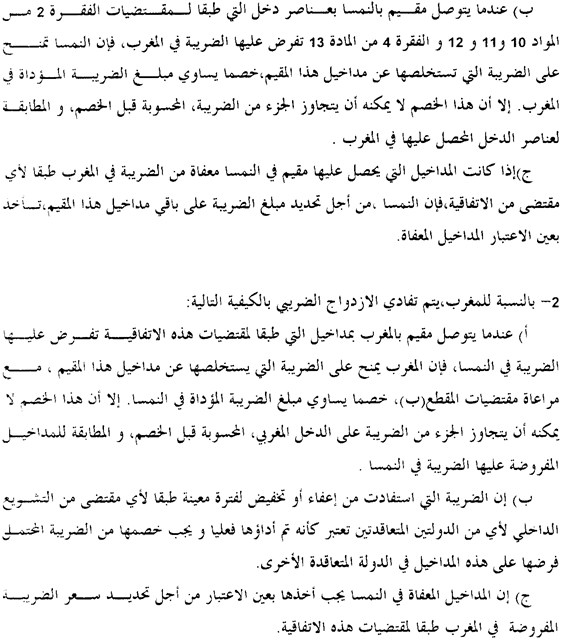 2. En ce qui concerne le Maroc, la double imposition est éliminée de la manière suivante: