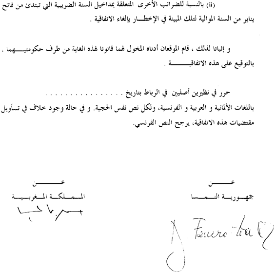 FAIT en double exemplaires originaux à Rabat, le 27 février 2002 en langues allemande, arabe et française, chaque texte faisant également foi. En cas de divergence d’interprétation des dispositions de cette Convention, le texte en langue française prévaudra.