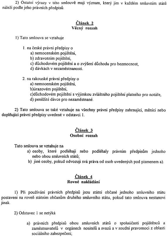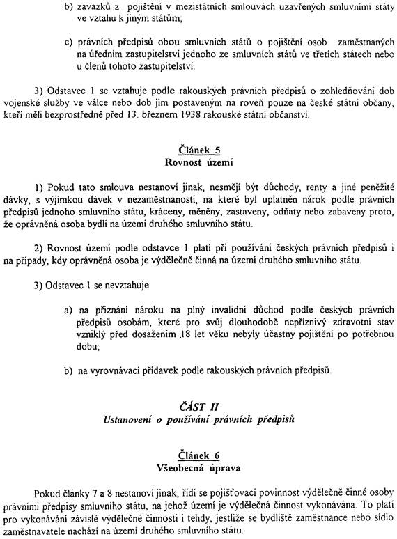 Die in diesem Artikel normierte Gebietsgleichstellung (Abs. 1) sichert entsprechend den in allen von Österreich geschlossenen Abkommen vorgesehenen Regelungen den Export der Geldleistungen im Bereich der Kranken-, Unfall- und Pensionsversicherung für die vom Abkommen erfaßten Personen (siehe zB Art. 5 der Abkommen mit Kroatien und Slowenien), wobei Abs. 2 diese Gebietsgleichstellung hinsichtlich der tschechischen Rechtsvorschriften auch auf Fälle ausdehnt, in denen die berechtigte Person nicht in Österreich wohnt, aber hier erwerbstätig ist.