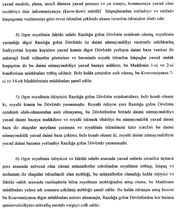 Abs. 5 schließt die so genannte “exterritoriale Dividendenbesteuerung” aus. Diesbezüglich hat sich die aserbaidschanische Seite weitere Überlegungen vorbehalten.