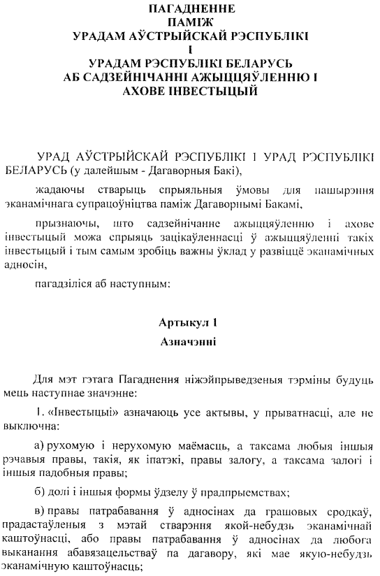 zwischen der Regierung der Republik Österreich und der Regierung der Republik Belarus über die Förderung und den Schutz von Investitionen