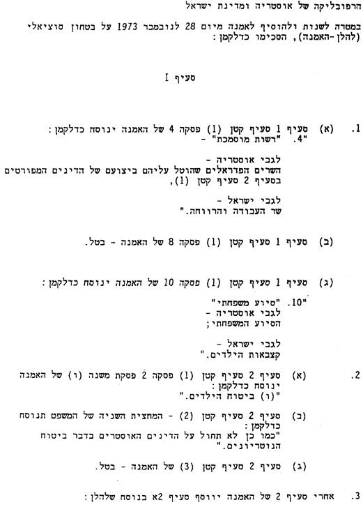 Das Abkommen mit Israel ist am 1. Jänner 1975 in Kraft getreten. In der Folge sind im innerstaatlichen und zwischenstaatlichen Bereich Rechtsänderungen eingetreten, die eine Anpassung des Abkommens erforderlich machen.