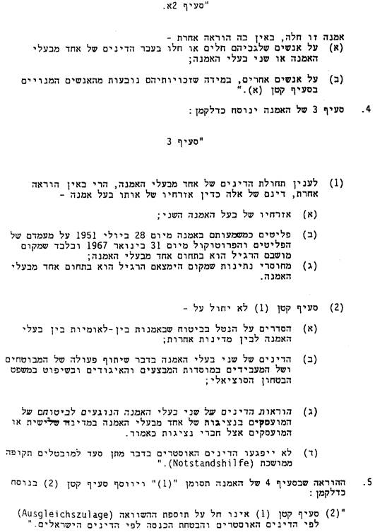 Art. 5 des Abkommens sieht in Verbindung mit Punkt III des Schlussprotokolls eine Gleichstellung von Tatbeständen vor, denen zum Teil nur deklaratorische Bedeutung zukommt. Soweit andere Abkommen solche Regelungen enthielten, wurden diese Bestimmungen im Rahmen von Revisionen dieser Abkommen gestrichen und in allen neuen Abkommen nicht mehr vorgesehen. Durch die Streichung von Art. 5 des Abkommens und der entsprechenden Bestimmung im Schlussprotokoll wird nunmehr auch im Verhältnis zu Israel dieser Entwicklung Rechnung getragen.