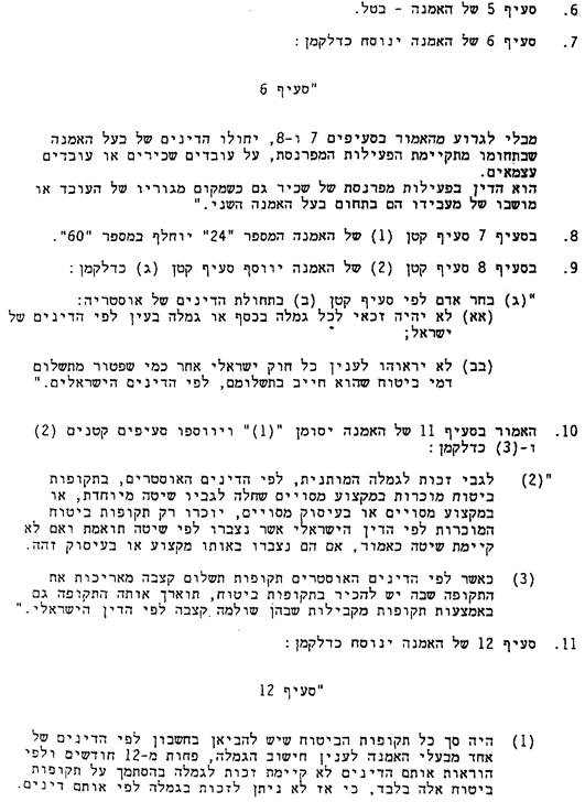 Über Wunsch der israelischen Seite wird durch die Anfügung von lit. c im Art. 8 Abs. 2 des Abkommens (Art. I Z 9) klargestellt, dass bei Wahl der österreichischen Rechtsvorschriften einerseits kein Anspruch auf Leistungen nach den israelischen Rechtsvorschriften geltend gemacht werden kann und andererseits die Beitragspflicht zu der vom Abkommen nicht erfassten israelischen Gesundheitsversicherung unberührt bleibt. Art. II Abs. 7 stellt in diesem Zusammenhang sicher, dass bereits festgestellte Leistungsansprüche unberührt bleiben.