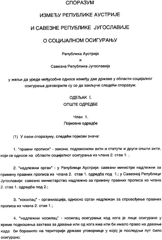 Abkommen zwischen der Republik Österreich und der Bundesrepublik Jugoslawien über soziale Sicherheit