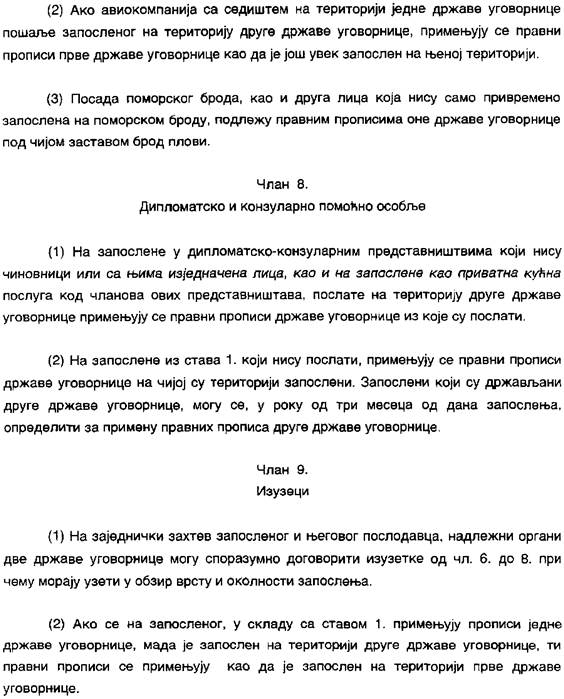 (1) Für Mitglieder der diplomatischen Vertretungen oder konsularischen Dienststellen, die nicht Beamte oder ihnen gleichgestellte Personen sind, und private Hausangestellte im Dienst von Mitgliedern dieser Vertretungen oder Dienststellen, die in das Gebiet des anderen Vertragsstaates entsendet werden, gelten die Rechtsvorschriften des Vertragsstaates, aus dem sie entsendet werden.