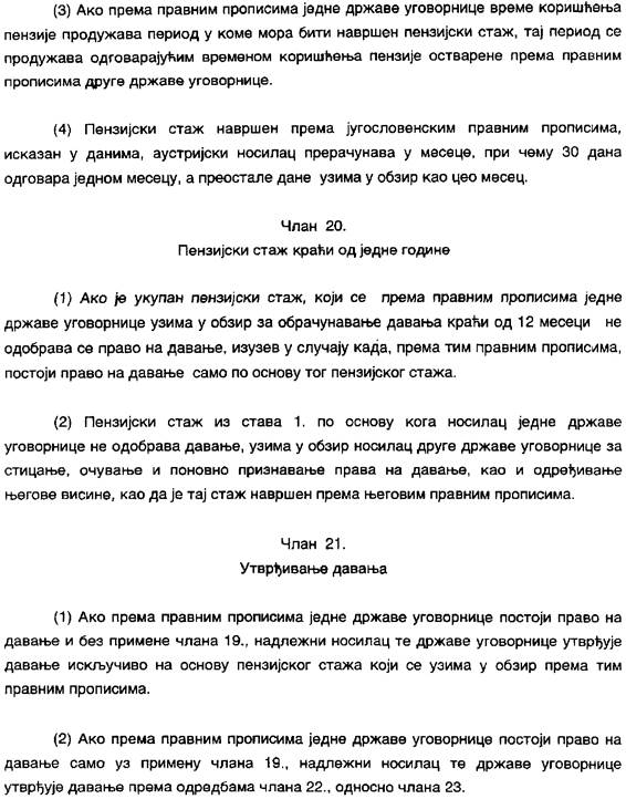Ergänzend zu den bisherigen generellen Bestimmungen (Abs. 1 und 2) sieht Abs. 3 eine ergänzende bilaterale Bestimmung betreffend neutrale Zeiten vor, die bisher nur unilateral für die österreichische Seite vorgesehen war (Z 10 lit. A/2/a des Schlussprotokolls). Darüber hinaus sieht Abs. 4 eine ergänzende Regelung betreffend die Umrechnung jugoslawischer Versicherungszeiten vor, wie sie auch bereits in die neuen Abkommen mit Kroatien (Art. 20 Abs. 5) und Slowenien (Art. 22 Z 2) aufgenommen wurde.