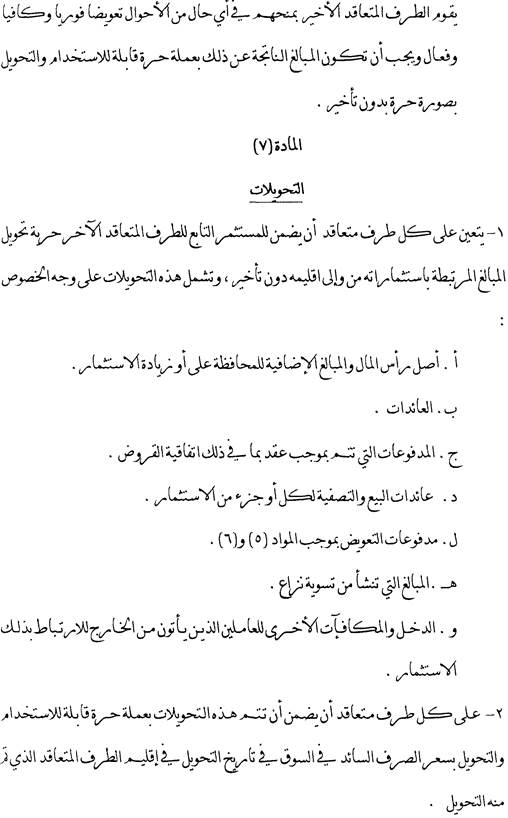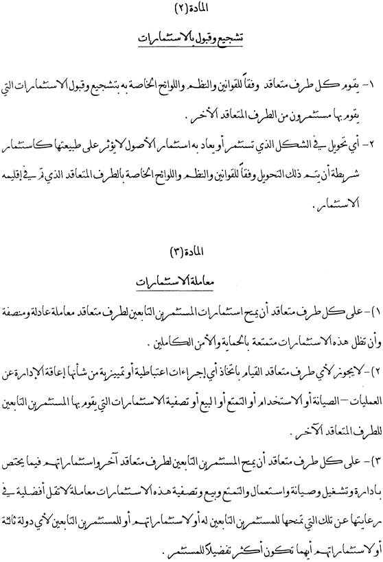 Dieser Artikel behandelt unter einem allgemeinen Gesetzesvorbehalt die Förderung und Zulassung von Investitionen. Weiters wird festgelegt, dass auch Reinvestitionen als Investitionen gelten, sofern sie in Übereinstimmung mit den Rechtsvorschriften des Aufnahmestaates erfolgen.