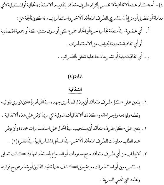 Absatz 4 fixiert die Ausnahmen von diesen Prinzipien (Freihandelszone, Zollunion, gemeinsamer Markt, Zugehörigkeit zu einer Wirtschaftsgemeinschaft oder einem multilateralen Investitionsschutzabkommen; Nichtanwendung auf Steuerfragen).