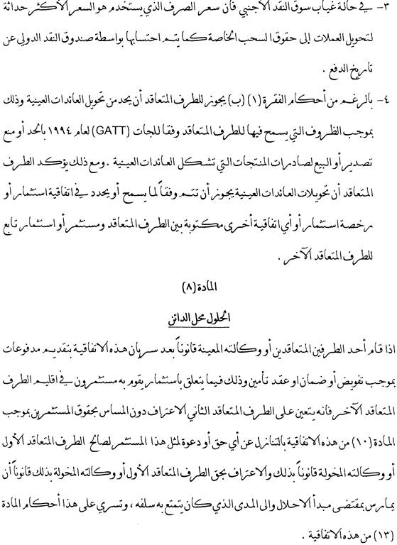 Da Investitionen seitens öffentlicher Stellen des Staates, dem der Investor angehört, vielfach mit Garantien ausgestattet werden, sieht dieser Artikel vor, dass im Falle des Eintrittes des Garantiegebers in die Rechte des Garantienehmers dieser Eintritt von der anderen Vertragspartei anerkannt wird.
