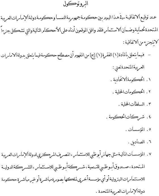 On signing the Agreement between the Republic of Austria and the United Arab Emirates for the Promotion and Protection of Investments, the undersigned plenipotentiaries have agreed on the following clarifications which shall be regarded as an integral part of the said Agreement;