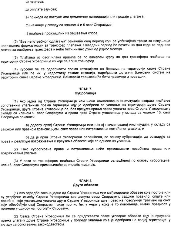 Da Investitionen seitens öffentlicher Stellen des Staates, dem der Investor angehört, vielfach mit Garantien ausgestattet werden, sieht dieser Artikel vor, dass im Falle des Eintrittes des Garantiegebers in die Rechte des Garantienehmers dieser Eintritt von der anderen Vertragspartei anerkannt wird.